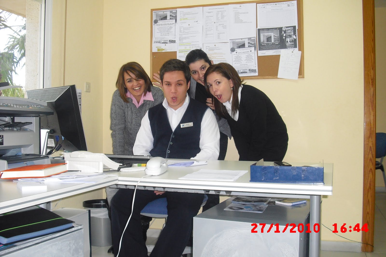 Sonia y Jerome del departamento de reservas, Rebeca nuestra comercial y Laura de personal, así se quedaron con la noticia. Gracias al esfuerzo de todo el equipo las ventas no decaen.
